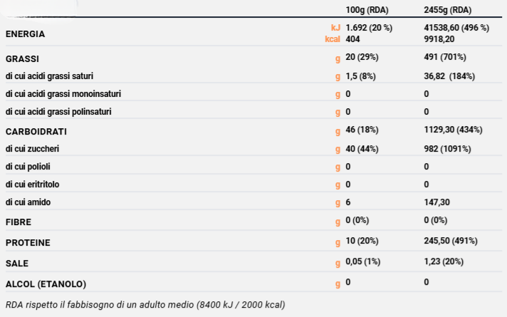 Contaminazioni: Glutine, Latte, Frutta a guscio, Uova , Soia.