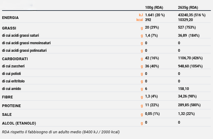 Contaminazioni: Glutine, Latte, Frutta a guscio, Uova , Soia.