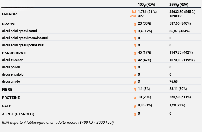 Contaminazioni: Glutine, Latte, Frutta a guscio, Uova , Soia.