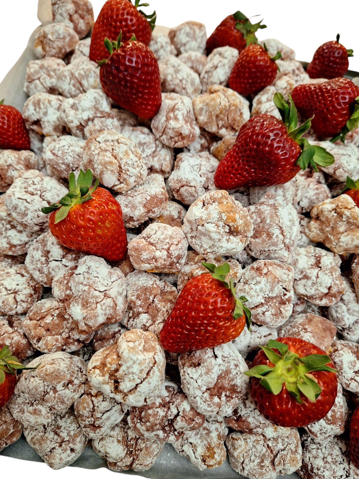 INGREDIENTI : Mandorle - Uova - Zucchero - Lamponi.