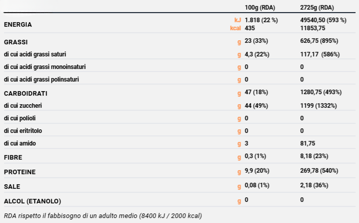 Lista allergeni da ingredienti: Uova, Latte, Frutta a guscio.