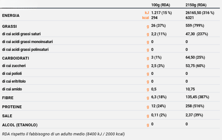 INGREDIENTI: Mandorle - Uova - Buccia di Arancia - Eritritolo.