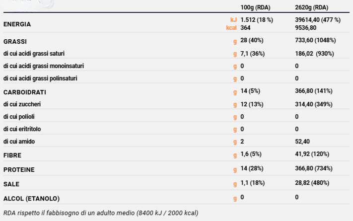 Contaminazioni: Glutine - Uova - Soia - Frutta a Guscio - Latte.